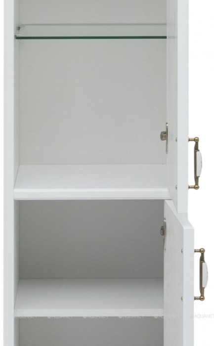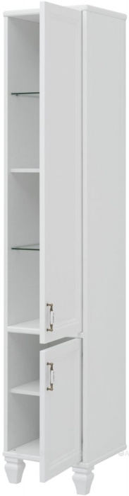 Шкаф-пенал для ванной Aquanet Валенса NEW 40 радует глаз благородной простотой. Она выразилась в изящной фрезеровке по белоснежным матовым фасадам, без лишнего декора и вычурности. В базовой своей комплектации пенал имеет напольно-подвесной монтаж. Ножки, на которые он опирается, выполнены из пенополиуретана повышенной прочности в ретро-стиле и идут в комплекте с тумбой. При напольной установке дополнительную пару ножек необходимо будет заказать отдельно. Пенал шириной 40 см имеет удобную зону хранения за двумя распашными дверцами с петлями, оборудованными доводчиками немецкой фирмы Hettich.