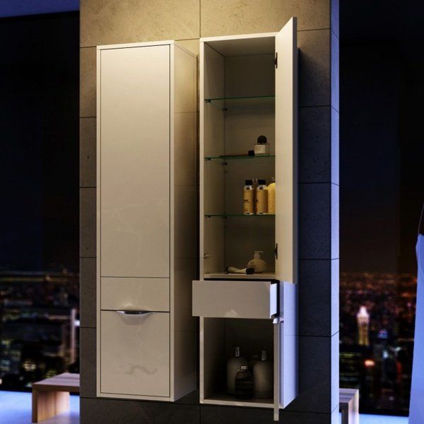 Пенал оснащен: -стеклянными полочками -выдвижным ящиком