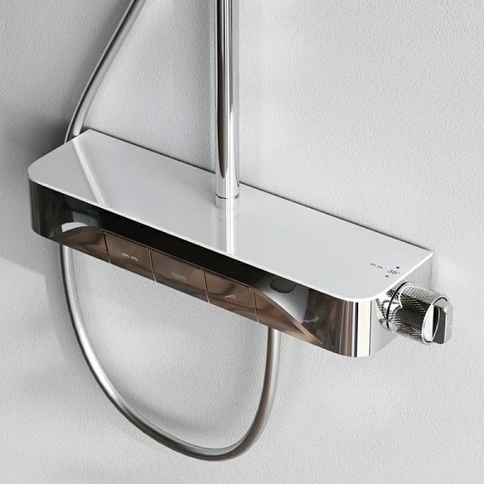Встречайте коллекцию Func – самую функциональную коллекцию в линейке AM.PM. Наши инженеры продумали и учли каждую деталь чтобы сделать процесс использования продуктов максимально простым и комфортным для всех членов семьи. Еще больше места для хранения: смеситель выполнен в виде вместительной полочки. Внушительный размер полки (40 см.) позволяет хранить все любимые средства под рукой а эстетичный силуэт станет настоящим украшением современной ванной комнаты. Интуитивно понятное управление: всего одна удобная ручка для настройки температуры и потока воды. Благодаря специально спроектированной эргономичной ручке вы можете управлять душевой системой даже с мыльными руками. Переключение потоков воды осуществляется нажатием клавиши. Продуманные детали для вашего удобства: телескопическая штанга регулируется по высоте обеспечивая комфорт для людей любого роста. Трендовая прямоугольная форма и увеличенный размер тропического душа подарят вам ощущения настоящего домашнего SPA.