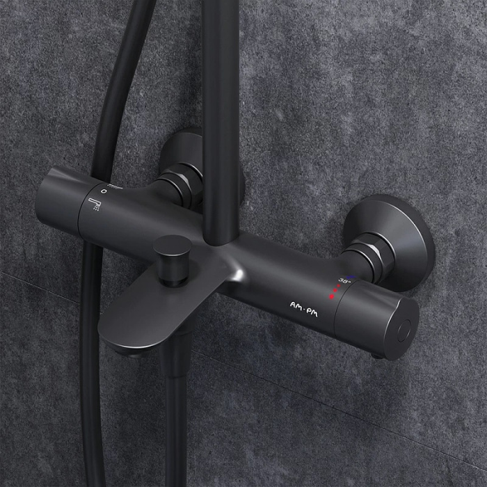 Тотальный дизайн в действии: все детали душевой системы – от пропорций ручного и верхнего душей до рисунка расположения форсунок на лейках – подчинены единой концепции в ультрамодном стиле Dynamic Organic. Продуманные детали для удобства использования: штанга регулируется по высоте в диапазоне от 1030 до 1460 мм обеспечивая комфорт для людей любого роста шаровый шарнир в держателе верхнего душа позволяет регулировать угол его наклона душевой шланг 1750 мм верхний душ диаметром 220 мм ручной душ диаметром 120 мм. Смеситель для ванны и душа с термостатом: термостатический картридж с высокочувствительным термоэлементом стопором безопасности на 38 градусов быстрой реакцией на изменения температуры или давления надежно защищает от ожога даже при внезапном отключении холодной воды