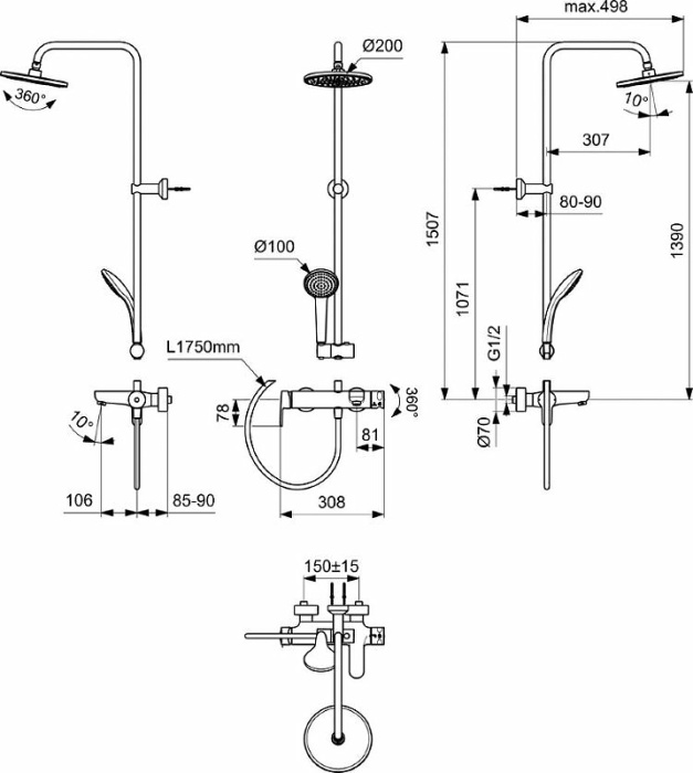 Душевая система Ideal Standard "Cerafine Model O" BC749XG