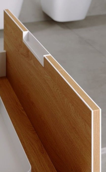 • Материал: ЛДСП. • Покрытие: ламинат. • Система хранения: два выдвижных ящика с механизмом плавного закрывания. • Монтаж: подвесной.