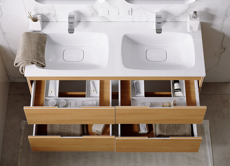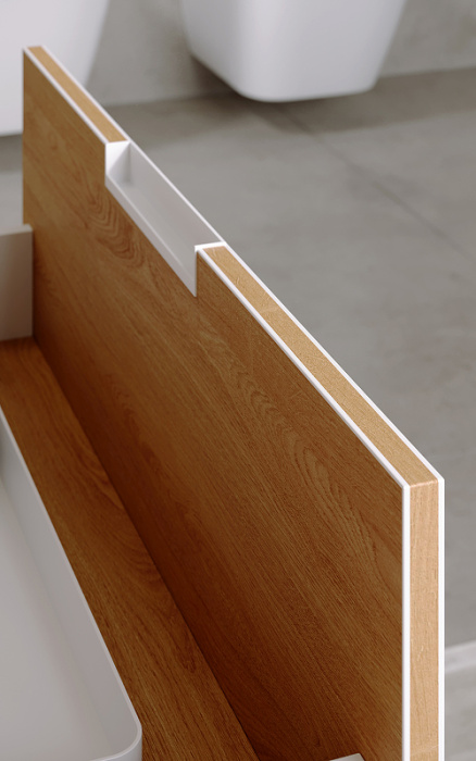 • Покрытие: ламинат. • Система хранения: четыре выдвижных ящика с механизмом плавного закрывания. • Монтаж: подвесной.