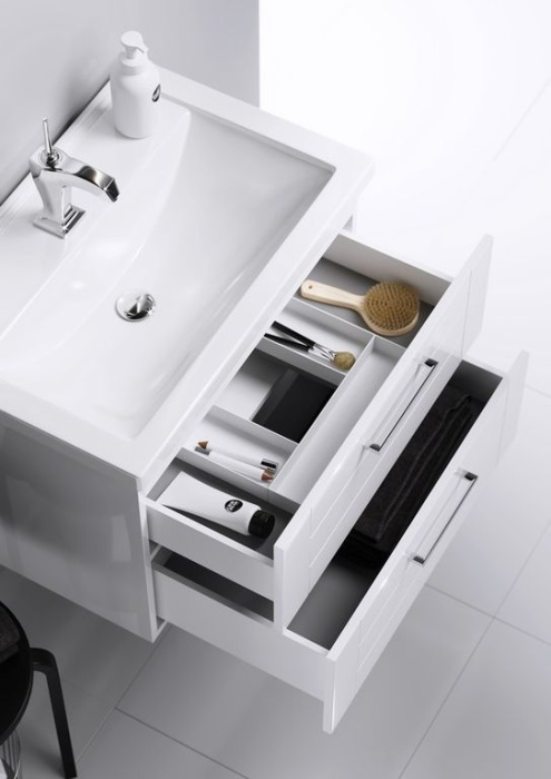 - Тумба оборудована ящиками с доводчиками Blum