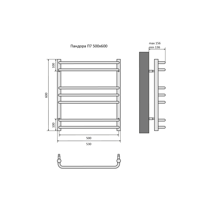 Полотенцесушитель водяной Aquatek Пандора П7 500х600