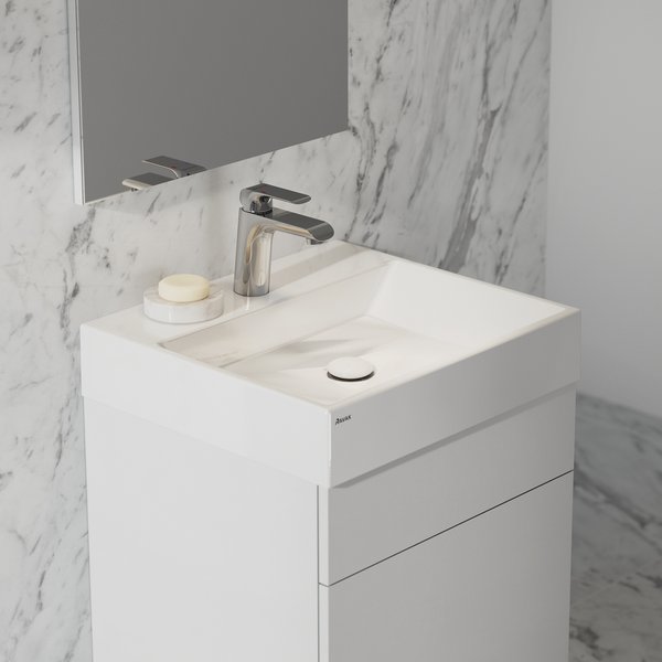 Умывальник устанавливается на стену или на тумбу. Умывальник без перелива, потому необходимо использовать фиксированный слив для умывальника.