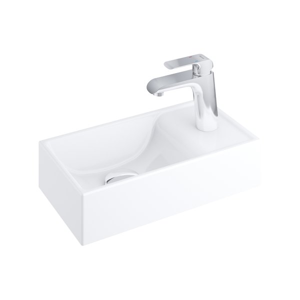 Керамический умывальник Veda Slim и одноименная тумба создают практичное компактное место для поддержания гигиены рук в туалетной комнате и ультрамалых ванных комнатах. Умывальник можно повернуть и установить смеситель как справа, так и слева.