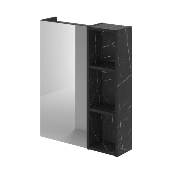 Зеркало шкаф в ванную из коллекции Alta поможет создать комфортные условия в ванной комнате. В качестве цветового решения был выбран актуальный оттенок Камень Пьетра Гриджиа черный. Шкаф с зеркалом имеет идеально ровную поверхность и дает четкое отражение без искажения. Лаконичный дизайн зеркального шкафа подойдет к интерьеру любой ванной комнаты. В производстве используют только качественные влагостойкие материалы, в составе которых полностью отсутствуют опасные вещества. Корпус и фасад изготовлены из ламинированного ДСП. На открытой нише можно разместить предметы личной гигиены. Дополнить комплект можно изделиями из коллекции Alta.