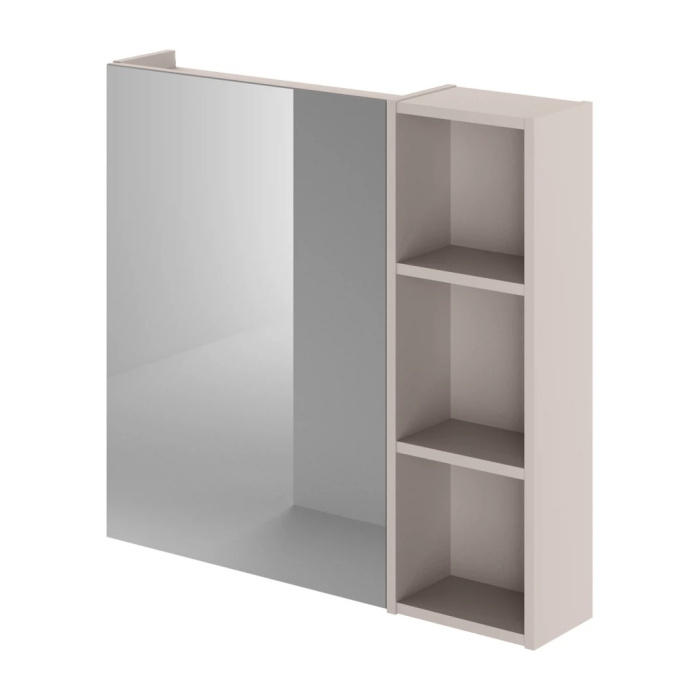 Зеркальный шкаф в ванную из коллекции Alta поможет создать комфортные условия в ванной комнате. В качестве цветового решения был выбран актуальный оттенок Кашемир серый. Шкаф с зеркалом имеет идеально ровную поверхность и дает четкое отражение без искажения. Лаконичный дизайн зеркального шкафа подойдет к интерьеру любой ванной комнаты. В производстве используют только качественные влагостойкие материалы, в составе которых полностью отсутствуют опасные вещества. Корпус и фасад изготовлены из ламинированного ДСП. На открытой нише можно разместить предметы личной гигиены. Дополнить зеркальный шкаф можно тумбой с раковиной, пеналом или стеллажом.