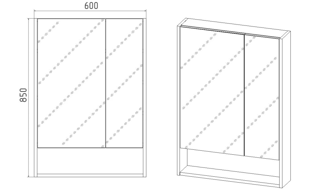 Зеркальный шкаф "Мальта" 60 правый/левый без света белый 134Х600Х850