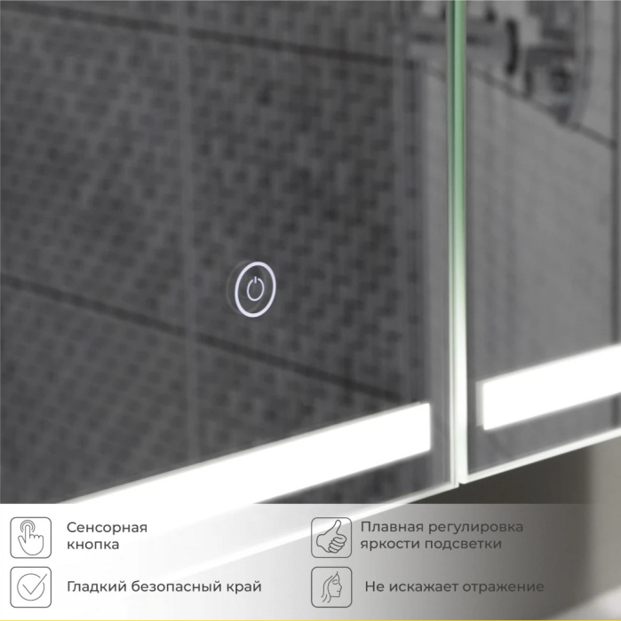 Зеркальный шкаф с подсветкой Итана Miro 70 – это идеальное решение для тех, кто ценит функциональность и стиль в ванной комнате. Этот зеркальный шкаф с подсветкой в ванную позволяет не только удобно хранить все необходимые мелочи, но и дополнительно освещает пространство, создавая уютную атмосферу. Зеркало с подсветкой размером 700х150х790 мм легко впишется в интерьер любой ванной комнаты, делая её визуально более просторной и светлой. Темно-серый цвет корпуса придаёт изделию элегантный и современный вид, который гармонично сочетается с большинством современных дизайнов. Шкаф оснащён правосторонним открытием дверцы, что делает его особенно удобным для размещения рядом с раковиной и позволяет максимально эффективно использовать пространство. Встроенная подсветка не только обеспечивает дополнительное освещение для выполнения утренних и вечерних ритуалов, но также выгодно подчёркивает красоту интерьера.
