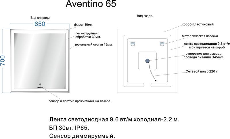 Зеркало "AVENTINO 650" светодиодное арт.66516