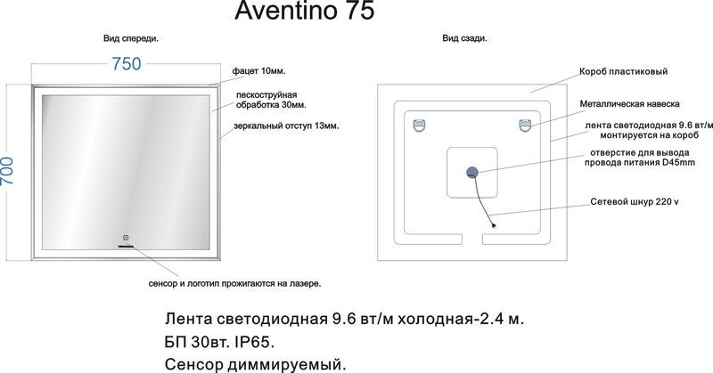 Форма — прямоугольная Монтаж — подвесной Комплектация — с подсветкой В комплекте: крепления Мощность подсветки 12Вт