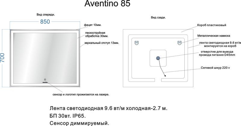 Зеркало "AVENTINO 850" светодиодное арт.68504