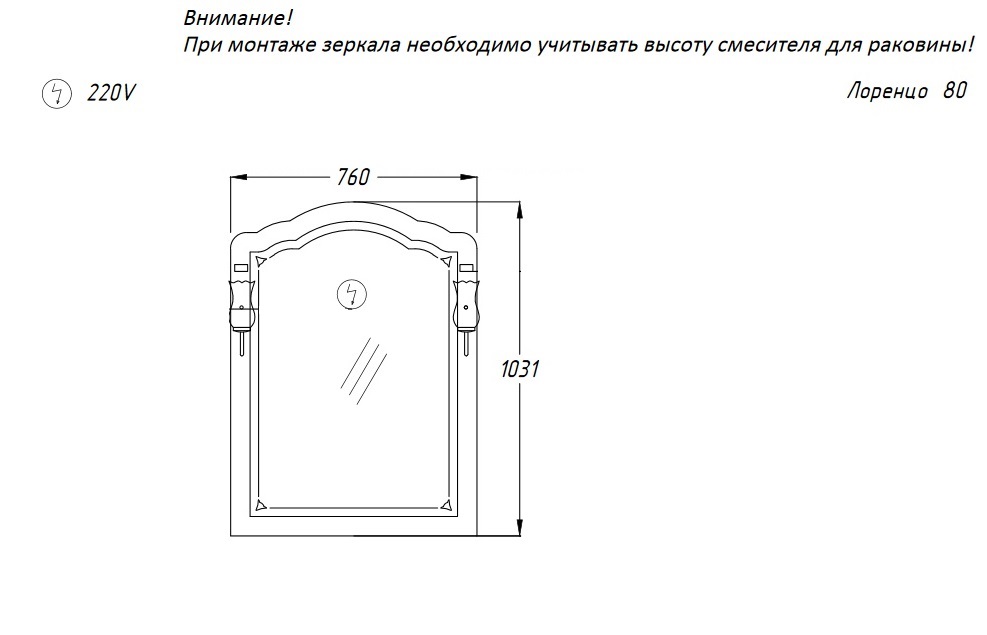 Зеркало и светильник (Рустика бронза) "Лоренцо 80"