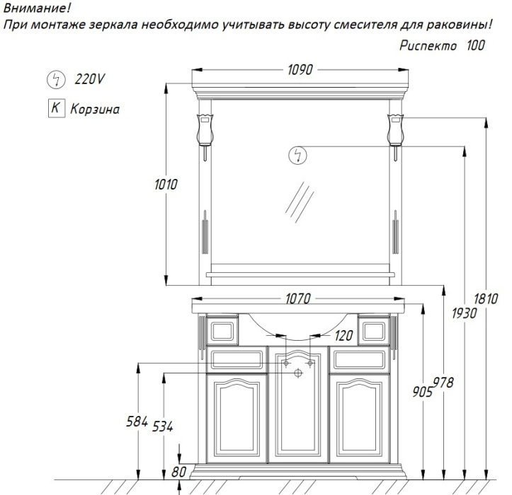 Зеркало и светильник (Рустика бронза) "Риспекто 100"