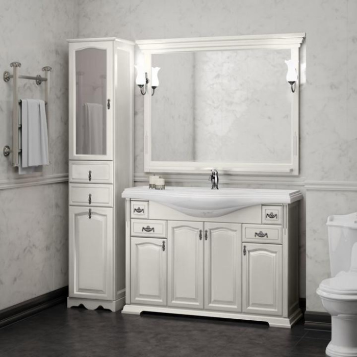 Коллекция Риспекто символизирует лучшие традиции неоклассики в сочетании с необыкновенной функциональностью и простотой дизайна. Успех и уникальность коллекции Риспекто формируется из нескольких вариантов отделок: Орех антикварный, Слоновая кость, Беленый бук, Белый матовый, а также размерным рядом моделей 95 см, 105 см, 120 см и глубокой керамической раковиной чешского и российского производства. Завершенность стилю коллекции Риспекто придают сложные филенчатые фасады мебели. Несколько вариантов пеналов: узкий 30 см, стандартный 40 см (с бельевой корзиной и без) и двустворчатый 60 см удачно завершают комплектацию коллекции Риспекто.