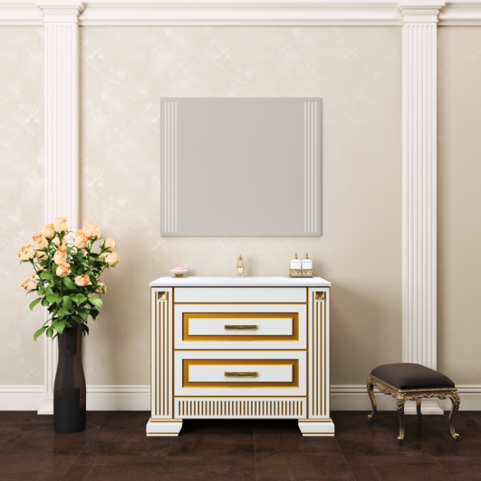 Серия «Оникс» - это современная мебель, выполненная из высококачественного МДФ, окрашенного глянцевой эмалью и декорированная патиной. В комплект входит тумба с двумя выдвижными ящиками и двумя дверками, раковина из литьевого мрамора и зеркало со встроенной подсветкой.