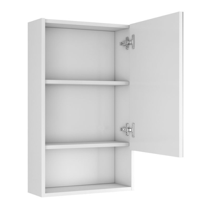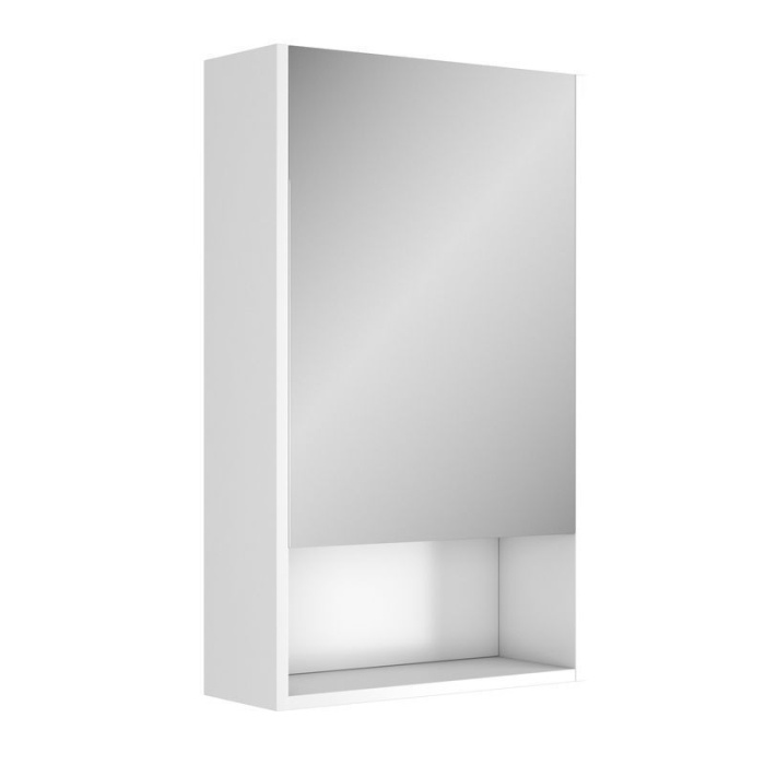 Материал корпуса : Влагостойкое ЛДСП. МДФ, зеркало. Покрытие корпуса : Покрытие фасада : ПВХ. Цвет белый глянец. Система хранения с полками/ с дверками. Механизм доводчика.