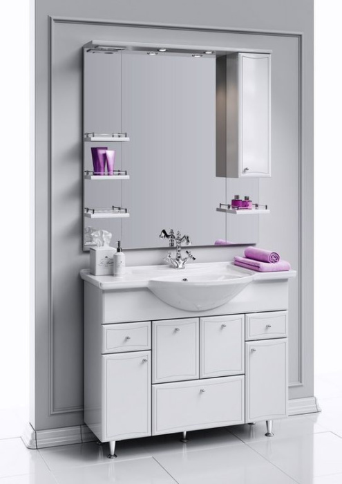 Зеркало оснащено: -светодиодной подсветкой сверху -блоком выключатель/розетка