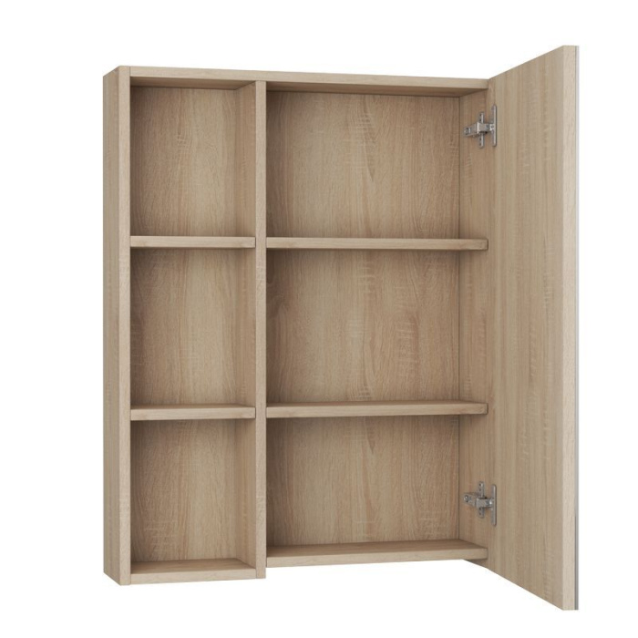 Материал корпуса : Влагостойкое ЛДСП. МДФ, зеркало. Покрытие корпуса : Покрытие фасада : ПВХ. Цвет дуб сонома. Система хранения с полками/ с дверками. Механизм доводчика.